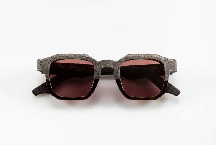 Una collezione fatta da montature spesse, colorazioni perlopiù scure e esclusive lavorazioni fatte a mano non riproducibili in serie, dove l’elemento chiave è la materia che viene declinata in due texture differenti: il nero e l’havana trattati fino a ottenerne una versione Stone, una Wood e una Raw.